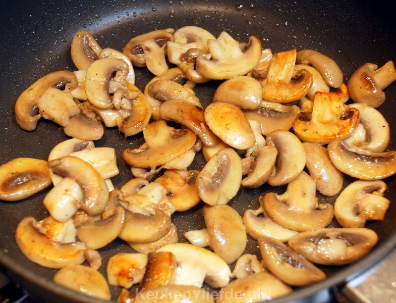 - 250 g champignons, schoongeborsteld en in dikke plakjes gesneden
