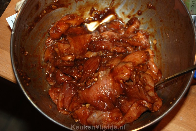 Laat het vlees minimaal 30 minuten marineren, maar het liefst langer.