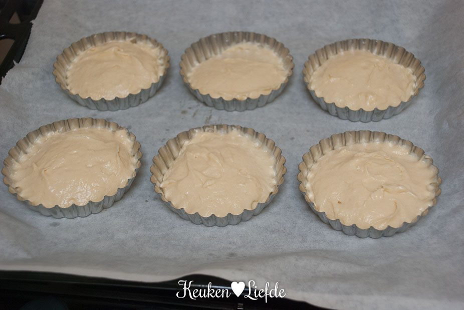 Verwarm de oven voor op 180 graden. Vet de bakvormpjes in met boter.