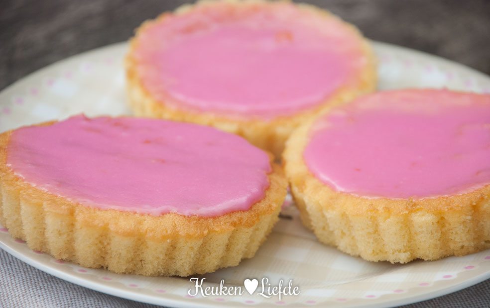Verdeel over elk cakeje wat glazuur en strijk het voorzichtig uit. Laat het glazuur hard worden en serveer de cakejes direct.