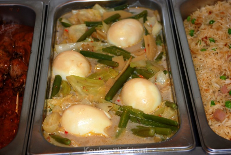Sajoer lodeh is een Indisch (bij)gerecht en bestaat uit diverse groenten, zachtjes gekookt in bouillon en verrijkt met kokosmelk. In deze variant zitten ook hardgekookte eieren. Serveer het als hoofdgerecht met wat gekookte witte rijst, of als onderdeel van een zelfgemaakte Indische rijsttafel.