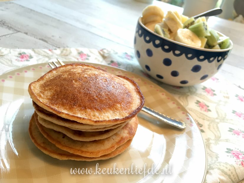 Ik bak pannenkoekjes met yoghurt als ontbijt en kan Ella-Marie verleiden om er een paar te eten. Ik serveer ze met vers fruit. Lekker en gezond! Het recept ga ik snel met je delen.