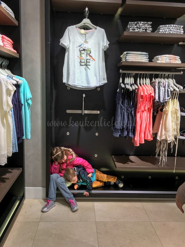 Ondanks het slechte weer beleven we een leuke dag. Er wordt flink geshopt …