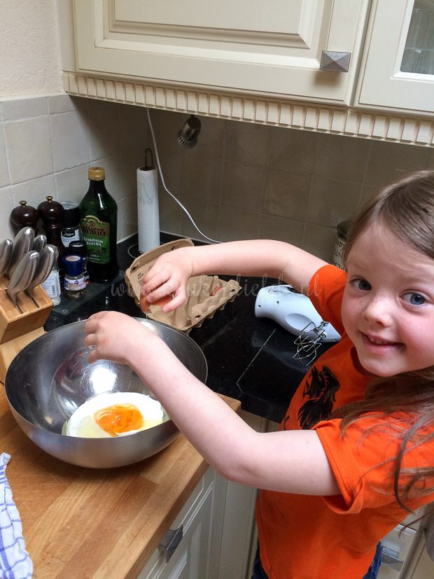 Als Ella-Marie ’s ochtends beneden komt, is Johan hardlopen en sta ik in de keuken carrot-cheescakemuffins te bakken. Ze is precies op tijd om de pan af te likken.