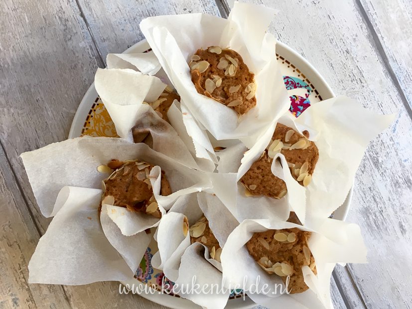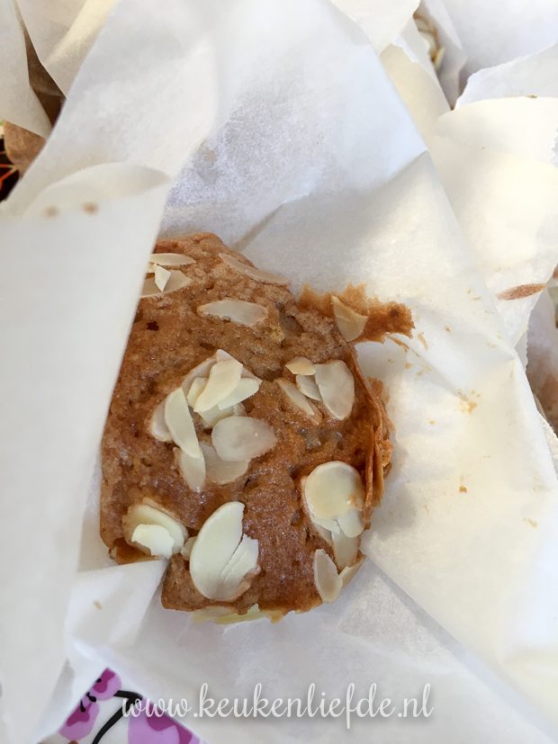 In plaats van cupcakepapiertjes te gebruiken, knip ik zelf papiertjes van bakpapier voor een rustieker uiterlijk. Het is een hele uitdaging om de bakpapiertjes in de bakvormpjes te drukken en te vullen met beslag. Voor de volgende keer ga ik op zoek naar voorgevormde muffinbakpapierjes. Wie heeft er tips waar ik die kan kopen!? De muffins smaakten in elk geval heerlijk. Zodra ik ze ook mooi op de foto krijg, deel ik het recept met je. 🙂