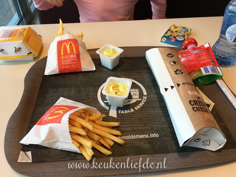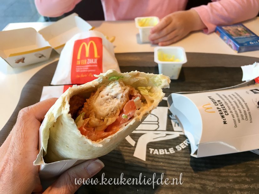 Na de zwemles van El rijden we naar de Mac. El neemt een kindermenu. Ik neem frietjes en een chicken wrap. (Probeer ook eens deze zelfgemaakte chicken wrap, daar kan niks aan tippen!)