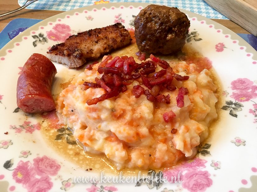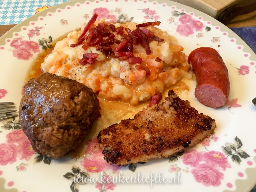 Johan kookt weer. Hij heeft zin in hutspot en pakt flink uit met uitgebakken spekjes, rookworst, gebakken speklappen en gehaktballen. Feestmaal!