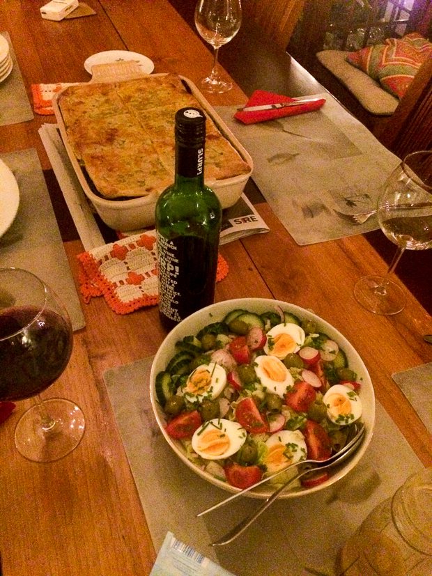 Johan en Ella-Marie eten vanavond bij mijn ouders. Op het menu staan een spinazie-ovenschotel met bladerdeegdakje en een groene salade. Helemaal niet verkeerd!