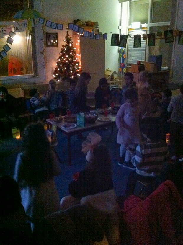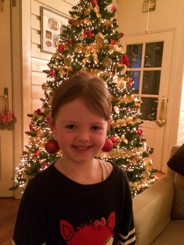 Daarna is het tijd om ons op te frissen, want Ella-Marie heeft vanavond kerstviering op school. Ze staat te stuiteren van ongeduld.