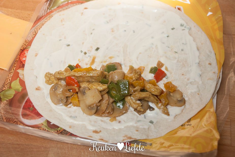 Besmeer de wraps met knoflooksaus en beleg met shoarma. Rol ze op en leg ze naast elkaar in een licht ingevette ovenschaal. Bestrijk de bovenkant met wat ketchup en beleg met in stukken gescheurde cheddar of geraspte kaas (ik strooide nog wat gedroogde oregano over de kaas).