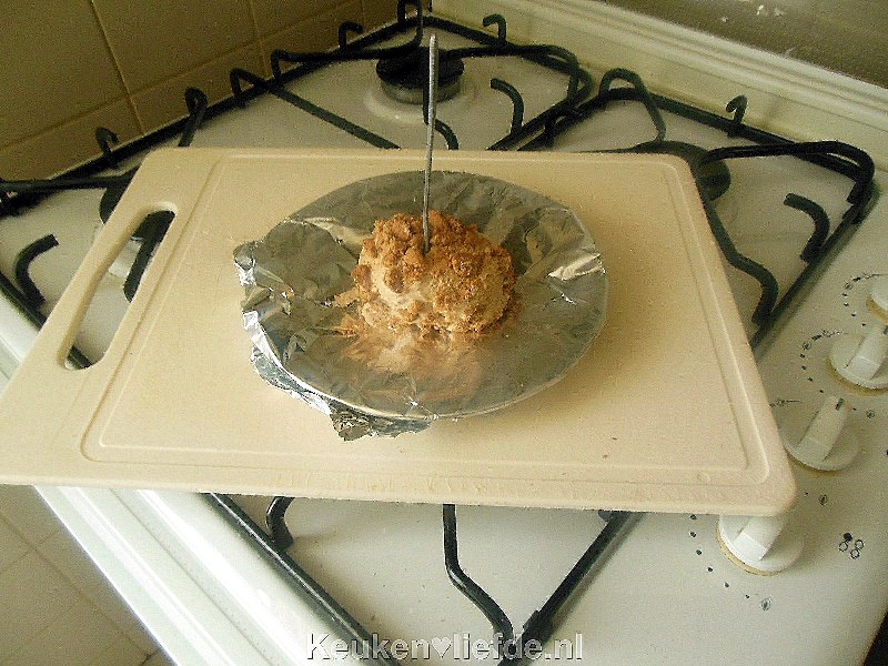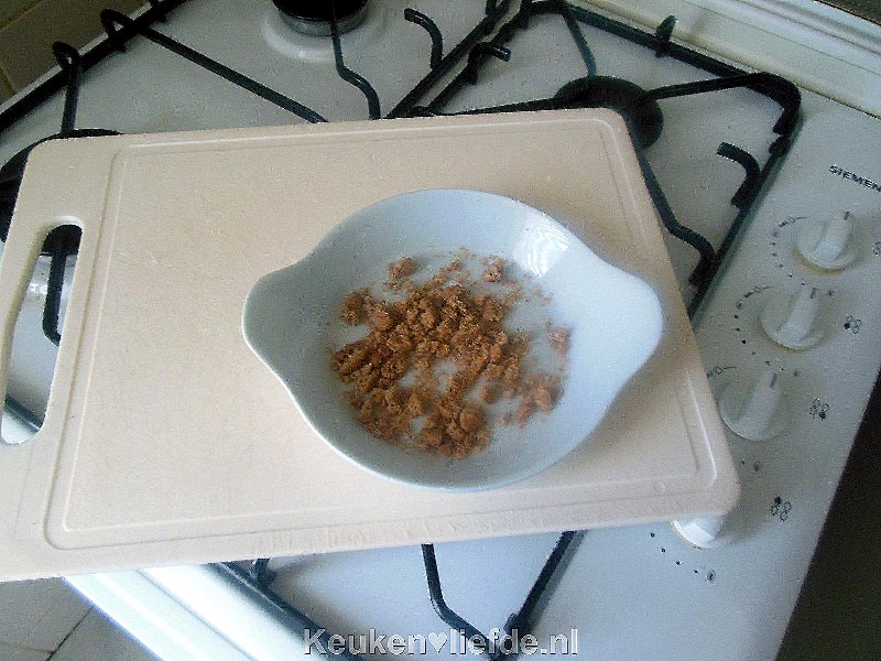 Chocolade au bain-marie verwarmen (ik heb het in de magnetron gedaan ca. 3 minuten 750 watt en tussentijds omroeren).
