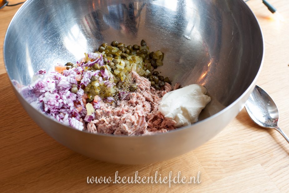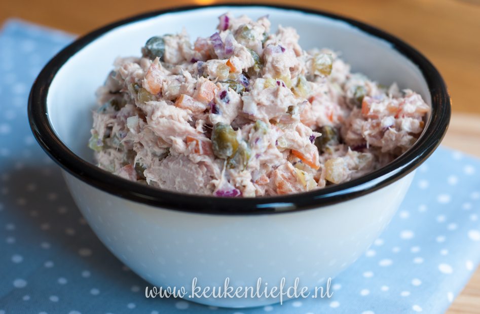 In onze kelderkast staan altijd blikjes tonijn op voorraad. Johan maakt vaak tonijnsalade om mee te nemen naar zijn werk en laat dan altijd wat voor mij achter omdat hij weet dat ik er ook dol op ben. Dit recept heb ik van Johan afgekeken. Voorheen maakte ik tonijnsalade altijd smeuïg met mayonaise, maar na het proeven van deze variant met Griekse yoghurt ben ik verkocht. Deze tonijnsalade is lekker smeuïg, fris en licht!