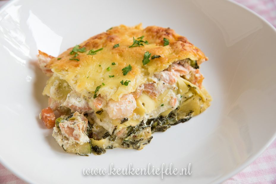 Snelle lasagne met zalm en spinazie