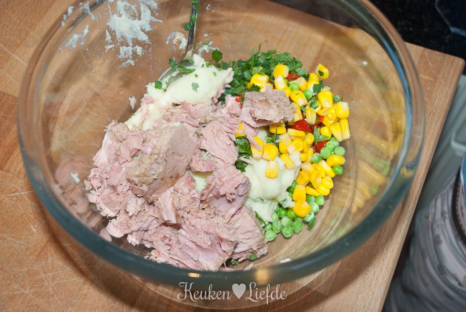 Elke koelkast puilt er weleens vanuit. Restjes! Weggooien is zonde, maar wat dan? Simpel. Je pakt een kom, gooit erin wat bij elkaar kan, kiepert er tonijn uit blik doorheen (want die ligt natuurlijk standaard op voorraad) et voilà: deze wonderlijke aardappel-tonijnkoekjes zijn geboren. O ja, je moet ze nog wel even paneren, maar met een paar kinderhandjes bij de hand is dat zo gepiept. 🙂 Je koelkast opeten was nog nooit zo’n feest!