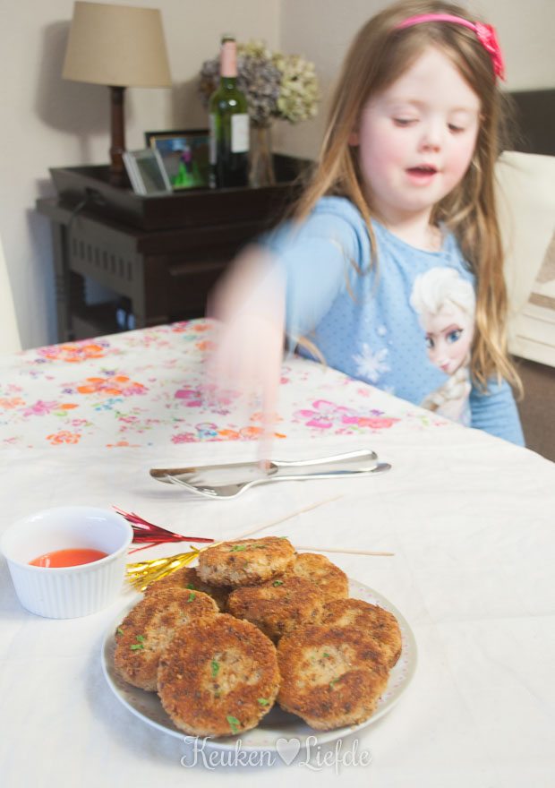 Leg ze op een stukje keukenpapier om uit te lekken. Serveer met ketchup of zoete chilisaus.