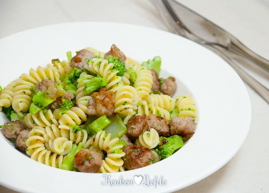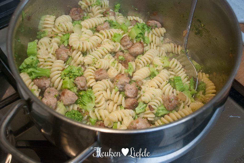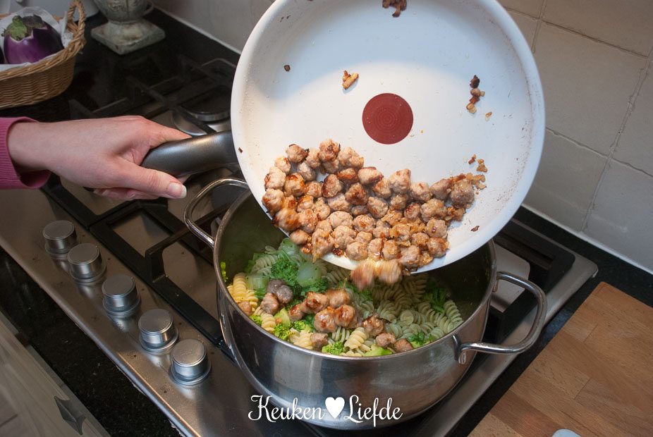 Speels & Smakelijk: fusilli met broccoli en worstballetjes