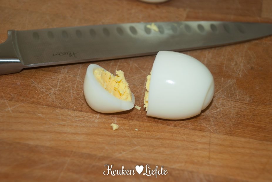 *Bij verse eieren zit de dooier mooi in het midden, waardoor het ei beter kunt vullen.