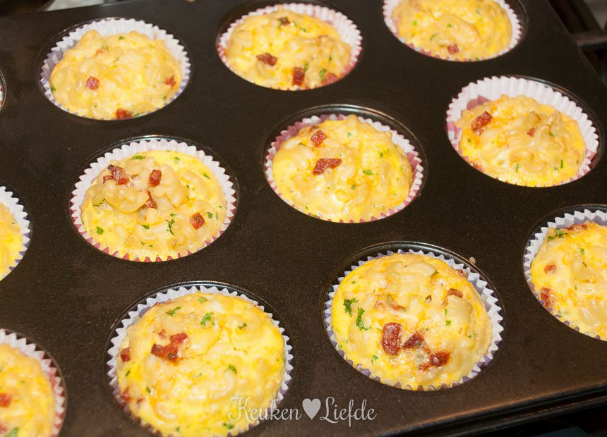 Serveer de macaroni-frittata’s eventueel met wat extra groenten.