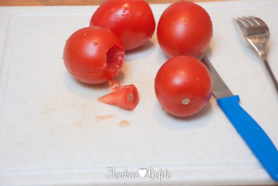 Eigenlijk is dit een typisch zomergerecht, dat je maakt als de tomaten uit eigen tuin of kas bijna exploderen van zoetigheid en de verse basilicum je neus prikkelt met een intens aroma. Maar niet getreurd, ook met tomaten en basilicum uit de winkel smaakt het magnifiek. Ik gebruik het liefst romatomaten, die zijn lekker vlezig, zoet en stevig.