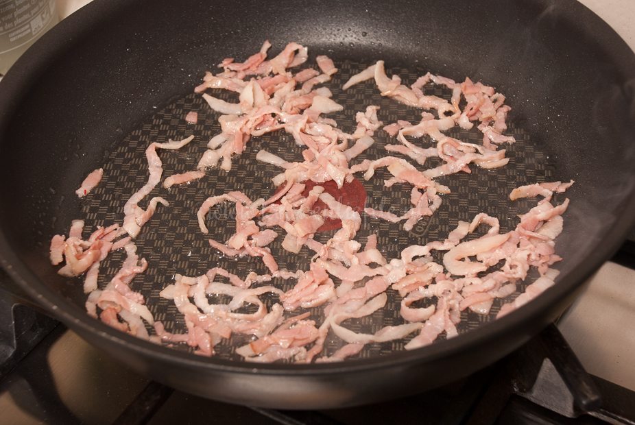 - 5 plakjes gerookt ontbijtspek, in smalle repen gesneden