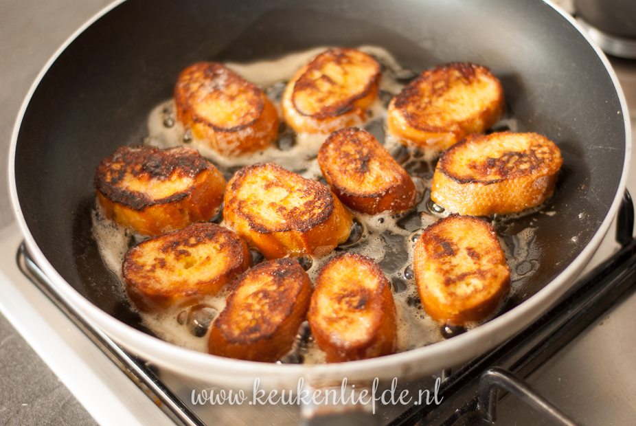 Zet het vuur niet te hoog en blijf erbij; wentelteefjes verbranden snel!