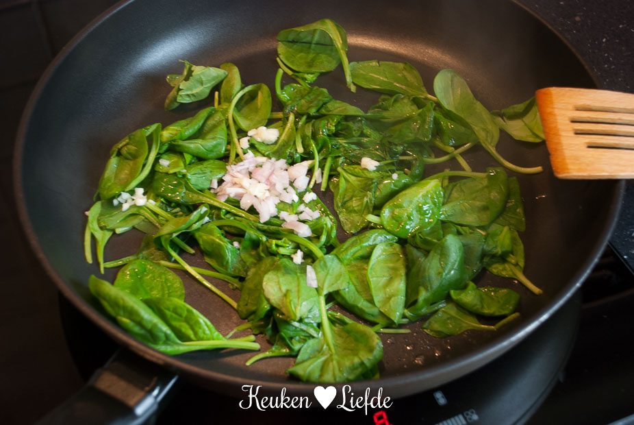 - 600 g spinazie, gewassen en drooggedept