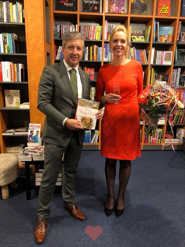 ’s Middags is de kookboeklancering van ons kookboek KOKEN MET KEUKENLIEFDE bij boekhandel Arentsen in Tiel. Ik overhandig het eerste exemplaar aan de burgemeester van Tiel Hans Beenakker en geniet samen met de liefste familie en vrienden van dit bijzondere moment.