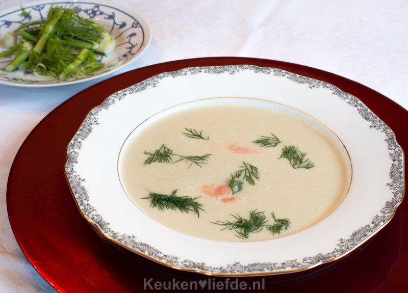 Venkelsoep met gerookte zalmsnippers