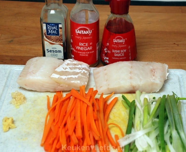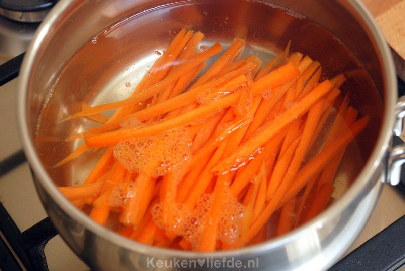- 1/2 wortel, geschrapt en julienne* gesneden