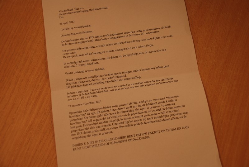 Jaarlijks worden er in Nederland door de voedselbank meer dan negenhonderdduizend pakketten uitgedeeld. Deze pakketten bestaan volledig uit voedsel dat gratis door bedrijven aan de voedselbank ter beschikking is gesteld. De reden hiervan kan verschillende oorzaken hebben maar in ieder geval zijn de producten nog goed en veilig te consumeren. Gooi jij weleens producten weg waarvan de houdbaarheidsdatum (THT, Tenminste Houdbaar Tot) is overschreden? Niet meer doen! Lees hier meer over THT en TGT.