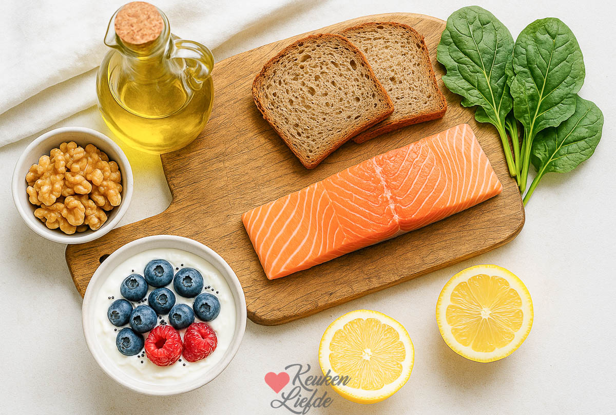 Er is één voedingsstijl die keer op keer positief uit de onderzoeken komt: het mediterrane dieet. Rijk aan groente, fruit, volkoren granen, olijfolie, noten, peulvruchten en vis. En weinig bewerkt voedsel, suiker of rood vlees. Een grote studie (Jacka et al., BMC Medicine, 2017) liet zien dat mensen met depressieve klachten die acht weken mediterraan aten, zich duidelijk beter voelden dan mensen die hun gewone eetpatroon hielden. In mijn praktijk zie ik hetzelfde gebeuren: zodra iemand meer “natuurlijk” gaat eten, met minder bewerkt voedsel en meer variatie, verandert niet alleen het gewicht — ook de energie, focus en stemming knappen zichtbaar op.