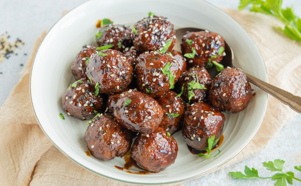Heerlijke gehaktballetjes in zelfgemaakte, sticky teriyakisaus. De teriyakisaus maak je in nog geen 5 minuten tijd en is veel lekkerder dan een flesje uit de winkel. Je kunt deze gehaktballetjes serveren als snackballetjes (zie onderstaande tip) bij de borrel, of serveer als onderdeel van een hoofdgerecht met bijvoorbeeld rijst of noedels en gewokte groente.