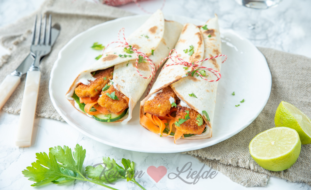 Wrap met vissticks en wortelsalade