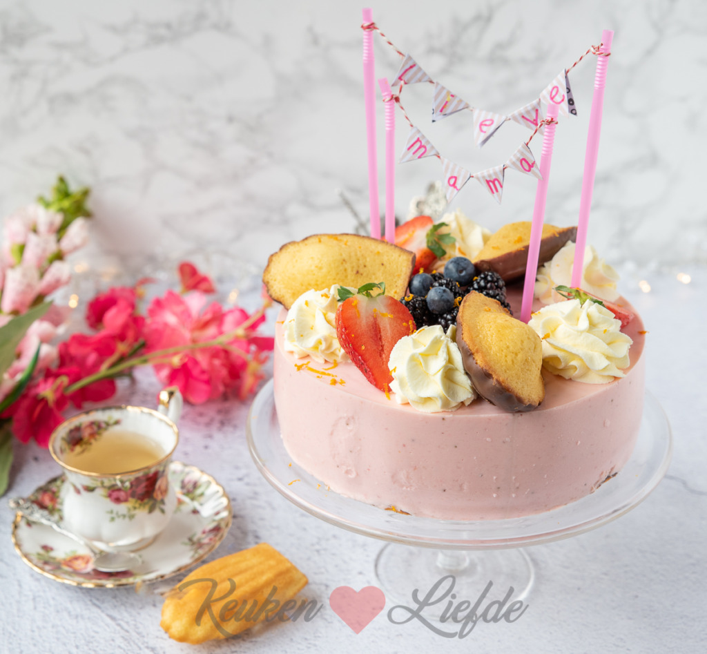 Aardbeienkwarktaart met madeleines voor de liefste moeder