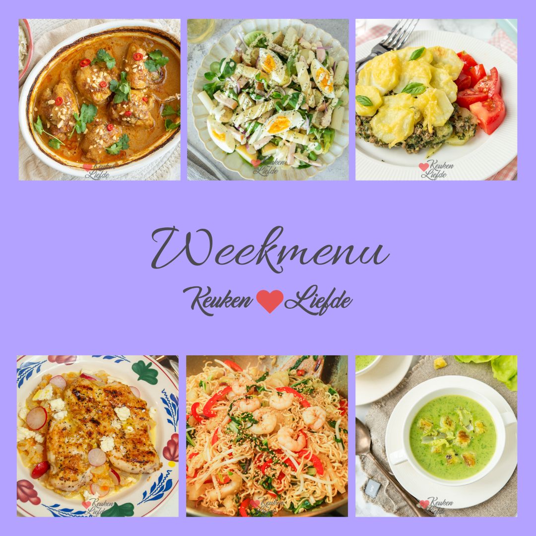 Omdat er bij de meeste mensen vaak één dag in de week is waarop je niet kookt — omdat er bijvoorbeeld kliekjes zijn, of omdat je zin hebt in een frietje of iets anders — deel ik in dit weekmenu 6 hoofdgerechten. Op zondag gaan we op de zoete toer en deel ik een lekker toetje of zoet baksel met je.