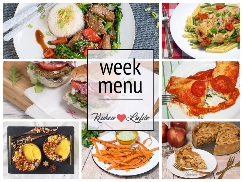 Mocht je vandaag of aankomend weekend alvast je boodschappenbriefje maken voor volgende week, check dan eerst even dit weekmenu! Elke vrijdag vind je hier een nieuw weekmenu met daarin lekkere en gevarieerde maaltijden om doordeweeks op tafel te zetten maar ook soms een lekker lunchgerecht, hapje of gebak. Elke dag wat anders, zo blijft het leuk en lekker!