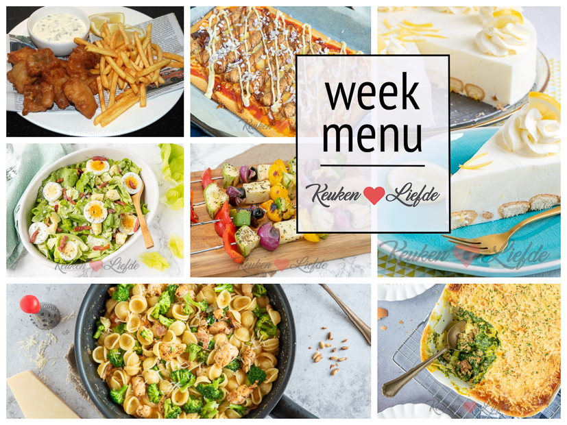 Elke vrijdag delen wij een nieuw weekmenu met lekkere en gevarieerde maaltijden voor elke dag! En natuurlijk wat lekkers voor in het weekend. Laat je inspireren!