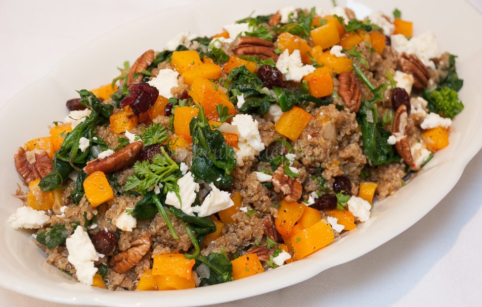 Ik ben dol op het kleine ‘wonderzaadje’ quinoa. De toepassing is zo veelzijdig. Ik voeg hem vaak toe aan salades voor de lunch, maar quinoa smaakt ook heerlijk als hoofdgerecht. Deze quinoaschotel met geroosterde pompoen en spinazie is een aanrader!