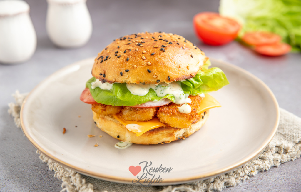 Een lekkere burger met vissticks en zelfgemaakte tartaarsaus. Voor een snelle variant gebruik je kant-en-klare vissticks. Maar zelf vissticks maken kan ook met dit recept.