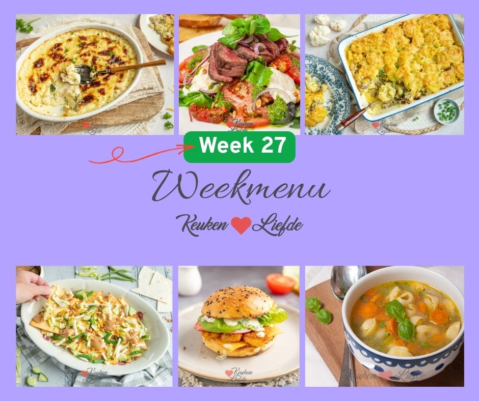 Weekmenu 27 2025 – Wat eten we vandaag? Een vraag die elke dag terugkomt. Daarom vind je hier elke vrijdag een nieuw weekmenu met makkelijke maaltijden voor doordeweeks, een soepje of verwengerecht op zaterdag en een zoete verrassing op zondag. Pak je pen en boodschappenlijstje en ga aan de slag!