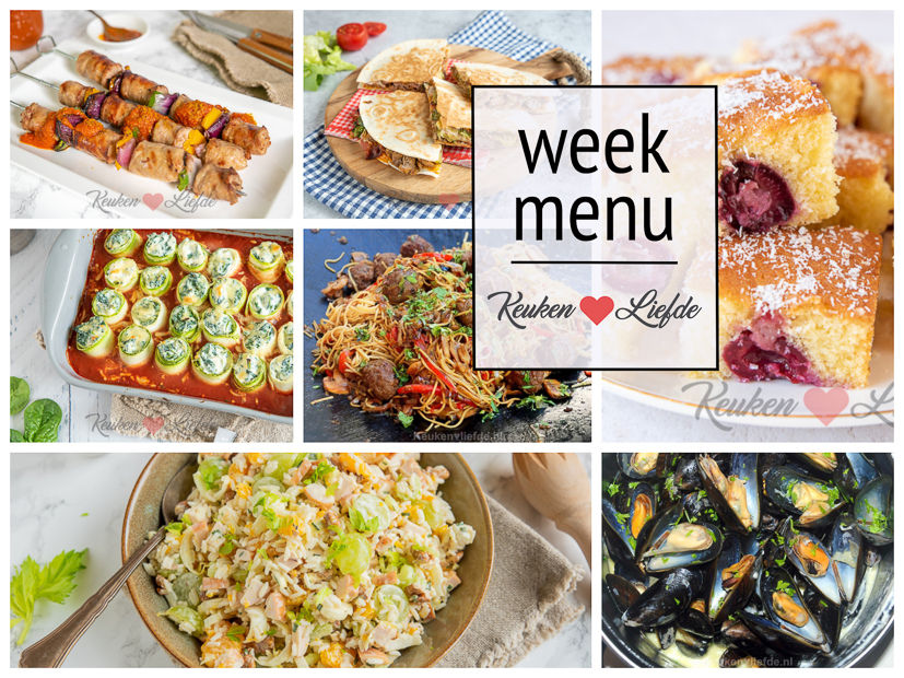 Elke vrijdag delen wij hier een nieuw weekmenu met lekkere en gevarieerde maaltijden voor doordeweeks en natuurlijk wat lekkers voor in het weekend. Laat je inspireren!