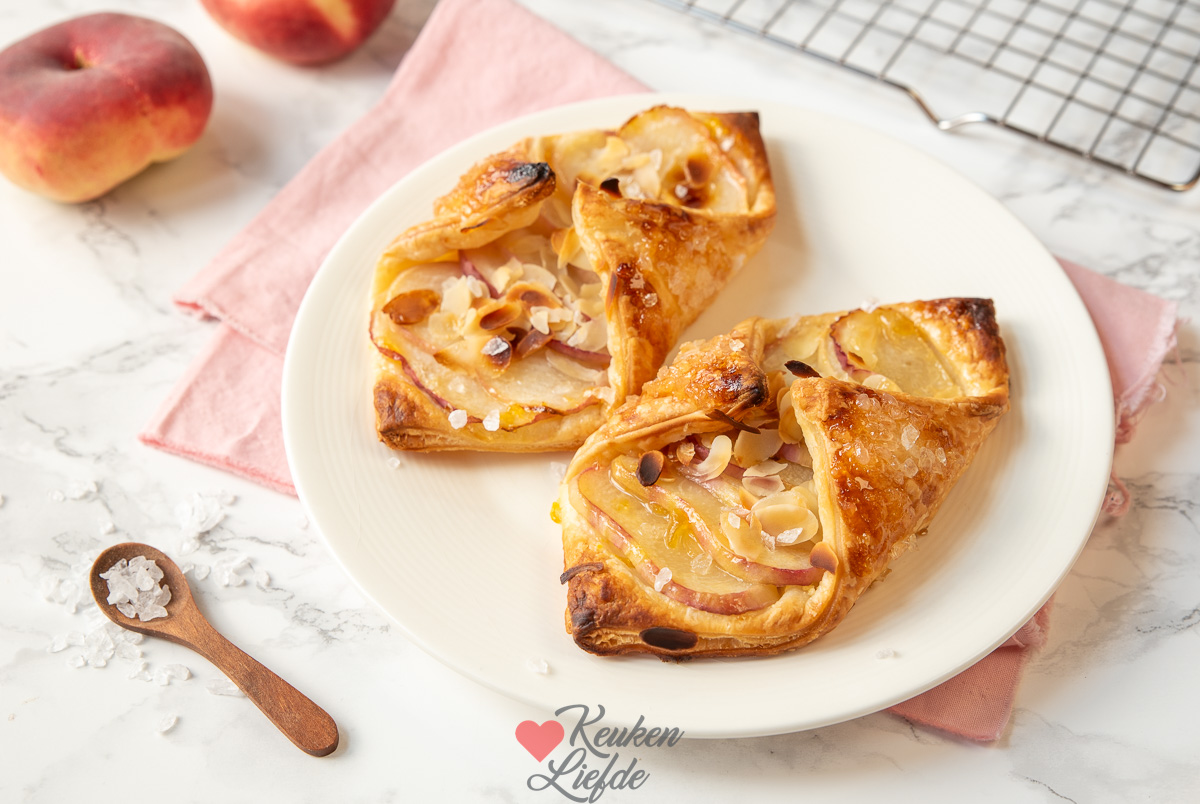 Zondag = bakdag! 🧡 Deze perzikflappen van bladerdeeg met amandelschaafsel en parelsuiker zijn zo gemaakt. Perfect bij de koffie, of serveer warm met een bolletje ijs als toetje.