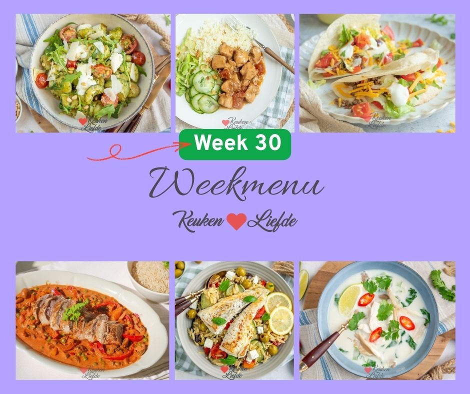 Weekmenu 30 2025 – Wat eten we vandaag? Een vraag die elke dag terugkomt. Daarom vind je hier elke vrijdag een nieuw weekmenu met makkelijke maaltijden voor doordeweeks, een soepje of verwengerecht op zaterdag en een zoete verrassing op zondag. Pak je pen en boodschappenlijstje en ga aan de slag!