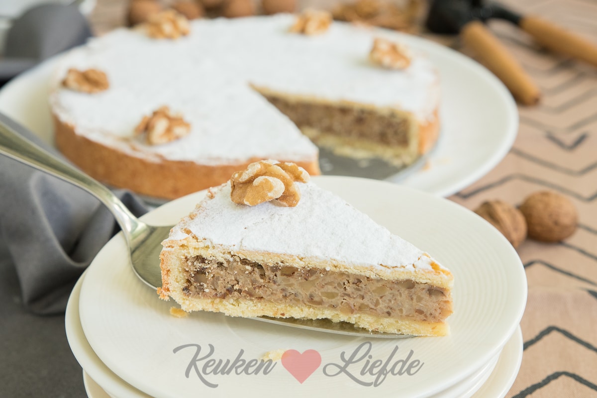 Dankzij een grote walnotenboom in onze tuin hebben wij een overschot aan walnoten. Ik bakte er onder andere deze heerlijke walnotentaart mee. Deze taart is na een dag of twee eigenlijk het lekkerst, dus maak hem het liefst al eerder als je er vandaag van wilt genieten.
