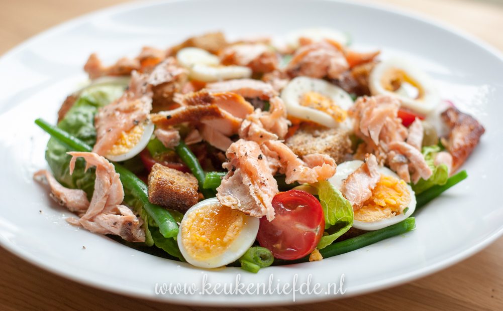 Ik ben dol op maaltijdsalades als hoofdgerecht. Het is licht verteerbaar, snel klaar en superlekker. Deze maaltijdsalade met gebakken zalm, haricots verts, krokante croutons en ei is een aanrader!