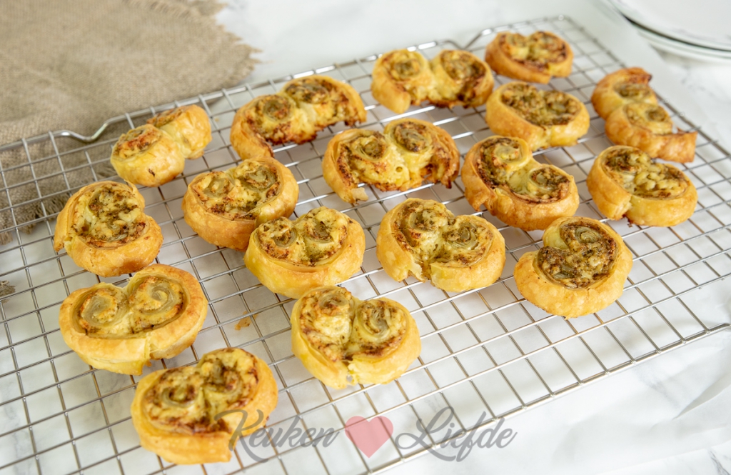 Een hartige snack om als borrel-, of verjaardagshapje te serveren vanavond? Deze kaasvlinders met pesto zijn verslavend lekker! Serveer ze lauwwarm, dan zijn ze het allerlekkerst.