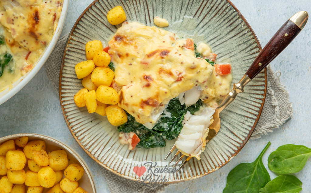 Vis Florentine is een Frans klassiek gerecht: zachte kabeljauw op spinazie, gegratineerd met romige kaassaus. Makkelijk te maken en heerlijk met gebakken of gekookte krieltjes!