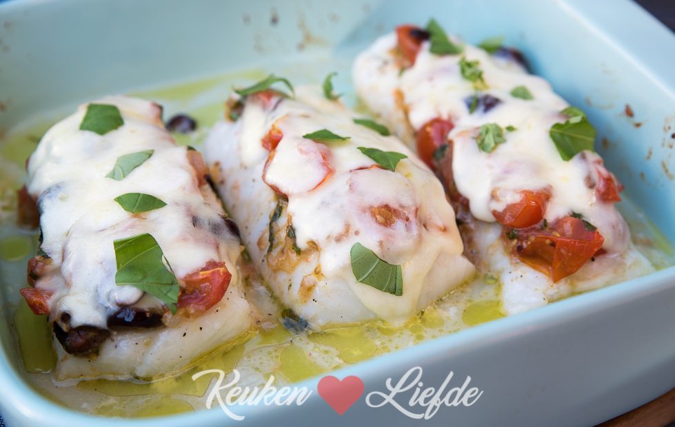 Donderdag – Kabeljauw uit de oven met tomaat en mozzarella (30 min, 3 pers.)