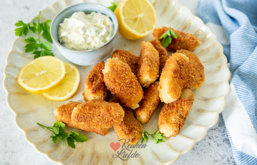 Vrijdag visdag? Wat denk je van krokante vis goujons, eigenlijk een chic woord voor visnuggets. 🙂 Geserveerd met zelfgemaakte tartaarsaus met frisse kappertjes, augurk en peterselie.