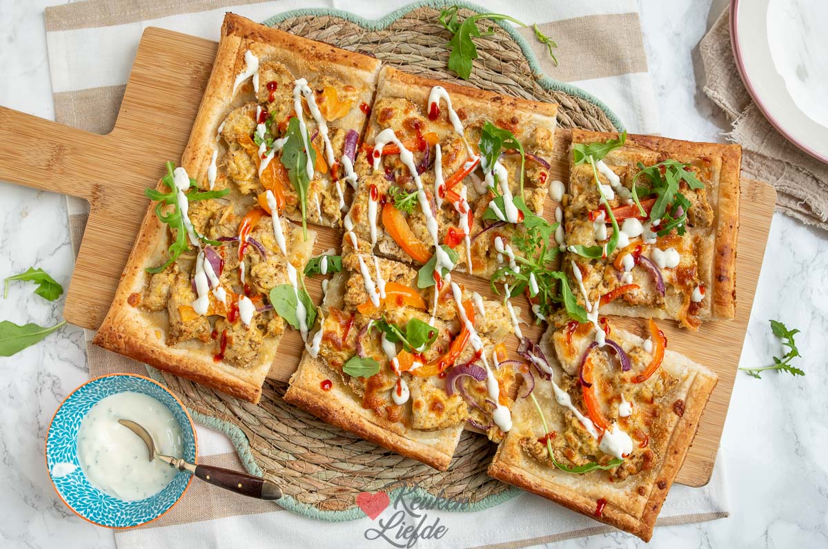 Zin in lekker en snel? Deze plaattaart met kipshoarma en knoflooksaus staat zo op tafel en is favoriet bij het hele gezin. Maak de kipshoarma al een dag van tevoren of koop hem kant-en-klaar, dan staat hij in 20 minuten op tafel.